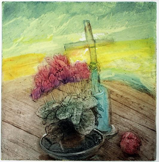 - 14. Cyclamen, Palm and Wensleydale sunset 17 cm² ETCHING reserve £100