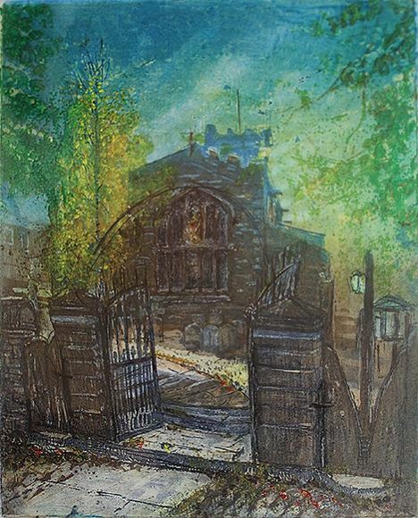- 1. Carol Tyler -Church with Stencils 20 x 24″ OIL Reserve £200