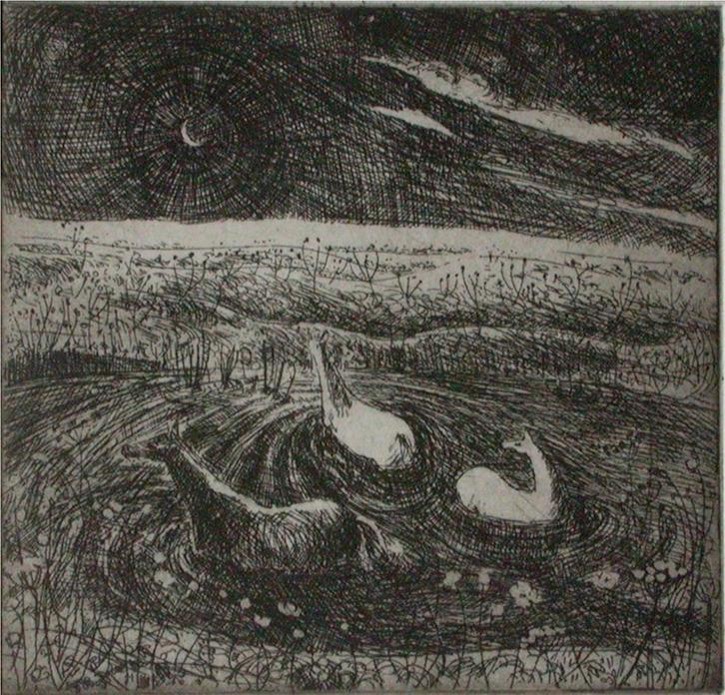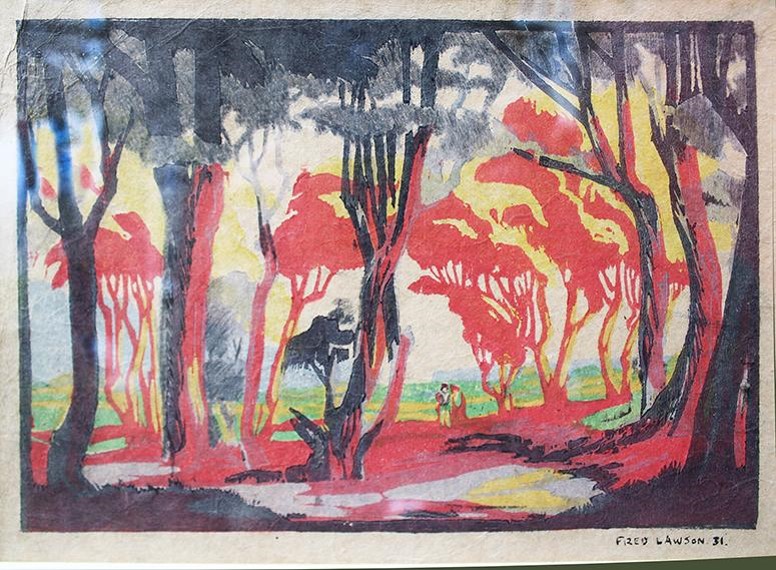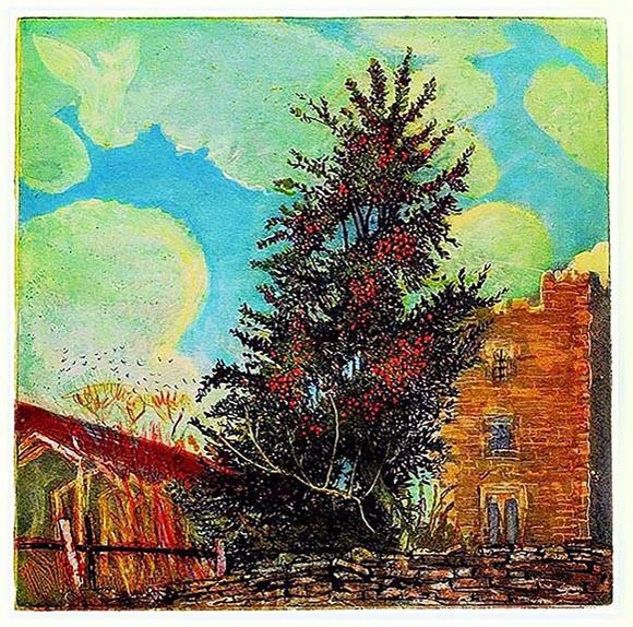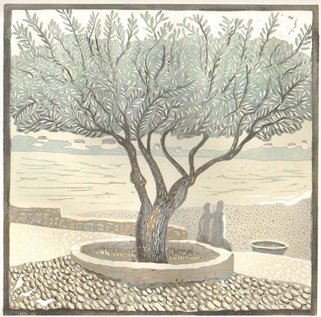 - 49. Under the olive tree 25.5cm² LINOCUT reserve £120