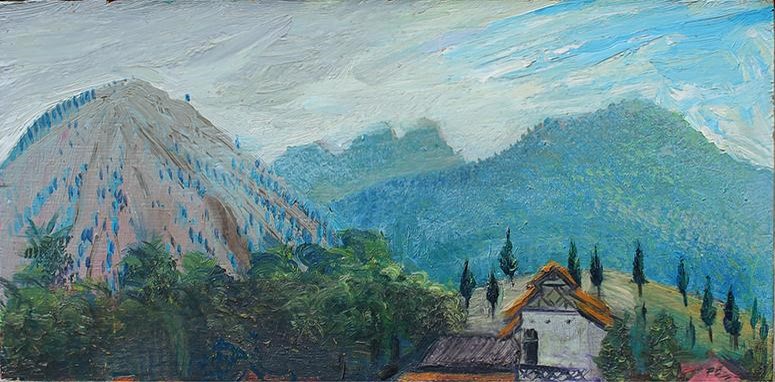 - 20. Central Java, fairly active volcanoes 17 x 34.5 cm OIL