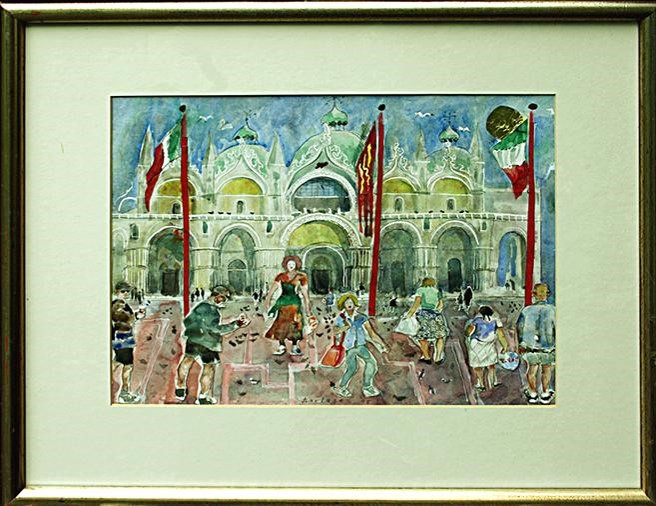 - 26. ‘Flags in St Marks Square, Venice’ 28 x 36 cm Watercolour