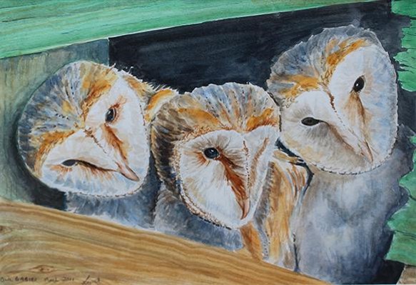 - 29.Owl babies 22 x 32cm WATERCOLOUR reserve £150