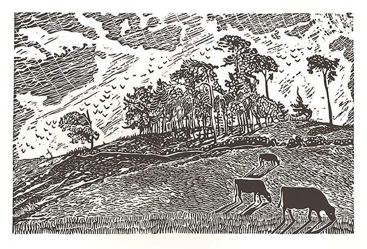 - 51. Sun on their backs…Ladyhill, Wensleydale 17 x 12 cm LINOCUT Reserve £60